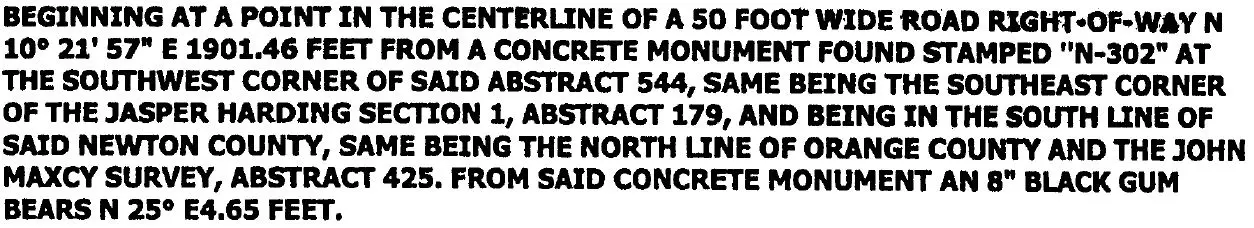 A metes and bounds legal description starts from a point of beginning. The description then goes around the perimeter of the parcel using angles and distances, eventually returning to the point of beginning.